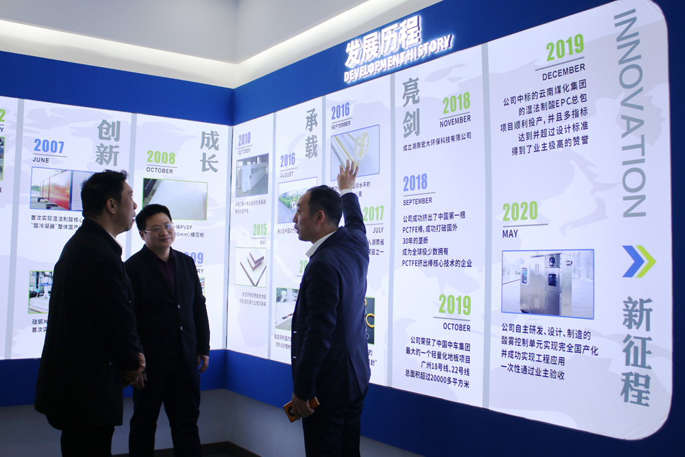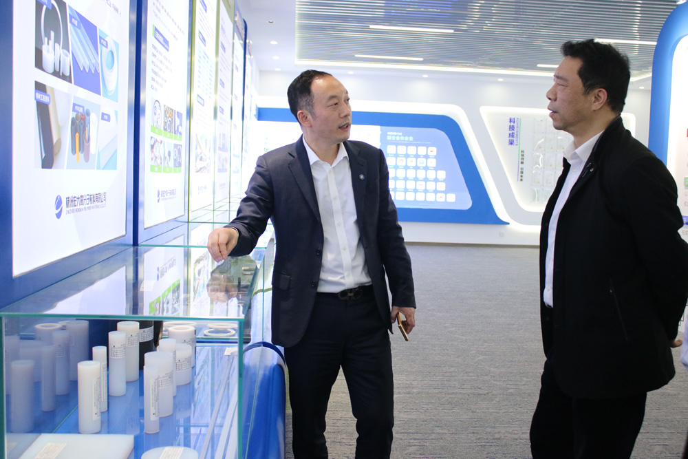展廳內(nèi)觀看宏大企業(yè)宣傳片,董事長曾維楚向尹局長一行詳細(xì)介紹了宏大發(fā)展歷程,主要產(chǎn)品(高功能新材料半成品、特種密封件、輕量化復(fù)合材料、精密注塑件、水處理核心元件、環(huán)保裝備),產(chǎn)品核心技術(shù)及應(yīng)用案例。尹局長對(duì)宏大的技術(shù)研發(fā)和發(fā)展成果給予了高度肯定。