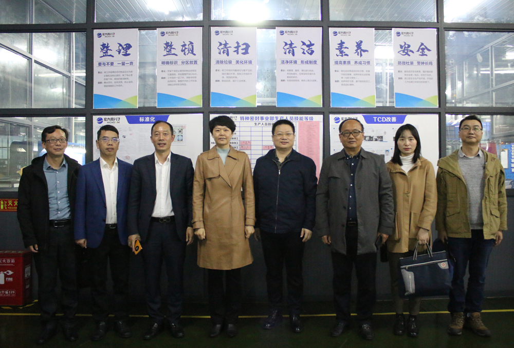 羅部長(zhǎng)一行首先參觀了宏大特種密封車間和輕質(zhì)地板生產(chǎn)車間。在車間內(nèi),宏大董事長(zhǎng)曾維楚向羅部長(zhǎng)一行詳細(xì)介紹了特種密封產(chǎn)品的技術(shù)水平、行業(yè)發(fā)展、市場(chǎng)前景、應(yīng)用領(lǐng)域以及產(chǎn)品在株洲地區(qū)的使用情況。羅部長(zhǎng)對(duì)我司在特種密封產(chǎn)品、輕質(zhì)地板及中心管產(chǎn)品等方面所取得的成績(jī)表示肯定,同時(shí)對(duì)宏大二十余年來(lái)對(duì)株洲市民營(yíng)經(jīng)濟(jì)發(fā)展作出的貢獻(xiàn)表示贊許。