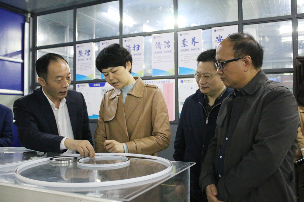 曾董向羅瓊部長(zhǎng)(左二)介紹特種密封產(chǎn)品