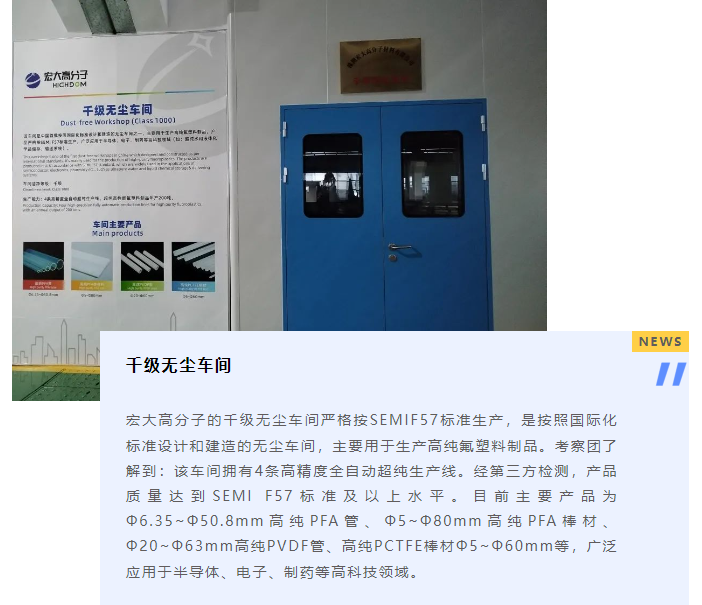 考察團(tuán)走進(jìn)各個(gè)生產(chǎn)車間,觀看生產(chǎn)設(shè)備和現(xiàn)場(chǎng)作業(yè),觀摩各種產(chǎn)品,對(duì)于宏大高分子的現(xiàn)場(chǎng)管理和成品品質(zhì)給予了肯定。嘉賓們?cè)儐柗芰显谶@些具體產(chǎn)品上的應(yīng)用方式,就具體產(chǎn)品的業(yè)務(wù)情況展開了探討,對(duì)宏大高分子的業(yè)務(wù)實(shí)力和應(yīng)用技術(shù)表達(dá)了贊許,對(duì)我司在半導(dǎo)體產(chǎn)品上的硬件與軟件投入給予了肯定,并提出寶貴意見。